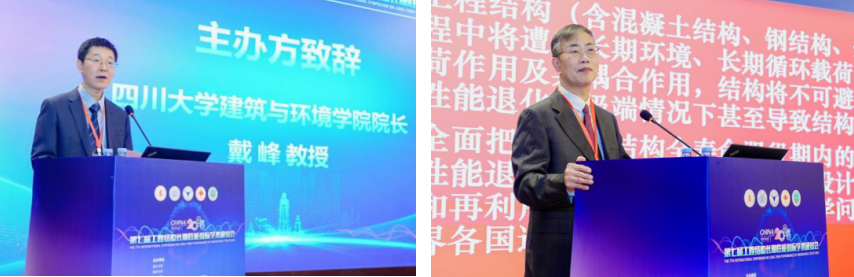 开幕式上,学院院长戴峰教授致欢迎辞,介绍了学院的办学历史与土木工程学科的发展历程,对与会专家及学者的到来表示热烈欢迎并预祝会议取得圆满成功。会议发起人、大会主席、浙江大学金伟良教授在致辞中回顾了工程结构长期性能国际学术研讨会的历史与各届会议概况,表达了对本届会议的期待,鼓励年轻人不断奋进。