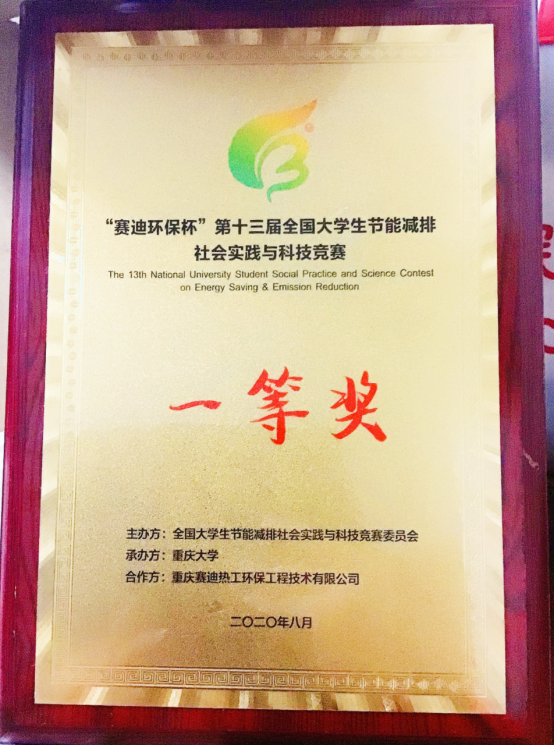 建环学子在第十三届全国大学生节能减排社会实践与科技竞赛中斩获一等奖
