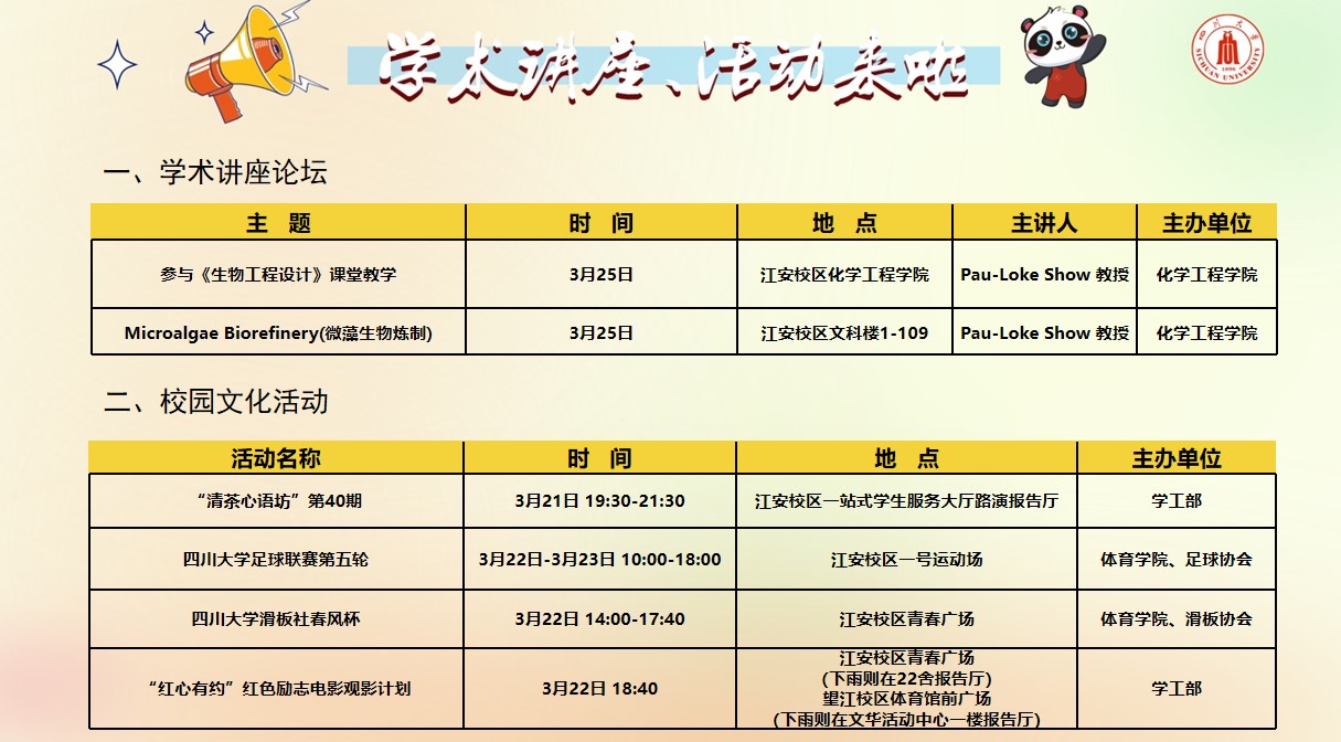 黄色视频 2025年3月21日-2025年3月25日讲座和活动预告