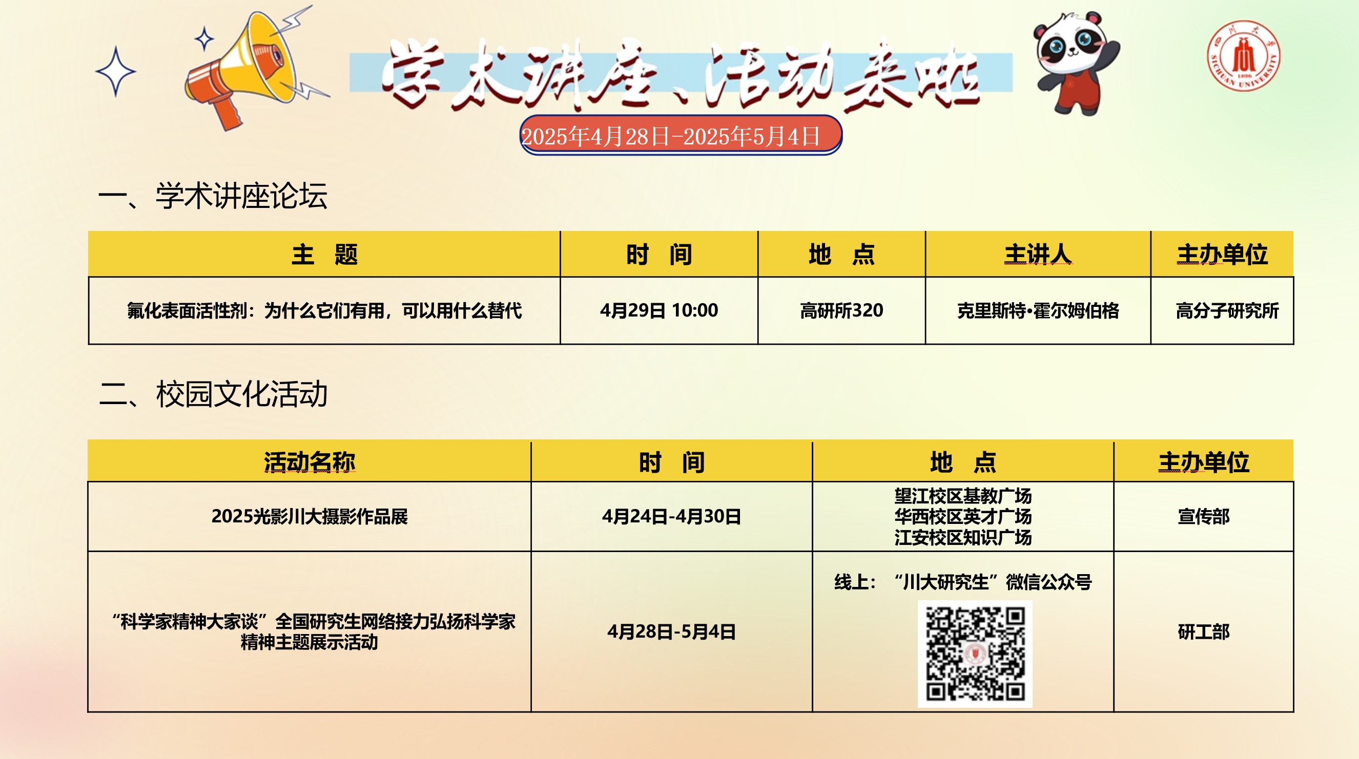 黄色视频 2025年4月28日-5月4日学术讲座论坛及校园文化活动预告