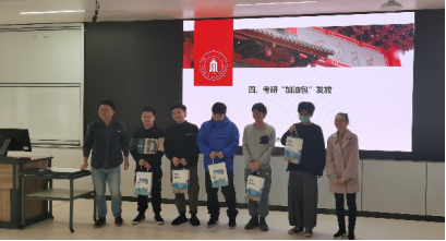 大会正式启动了学院本年度 “护航计划”。学院在研究生群体中遴选优秀学生作为考研“小导师”,有针对性地为考研学子开展专业指导。 “护航计划”志愿者代表赵子翔分享考研经验,为大家提供冲刺阶段备考建议。最后,学院为考研的同学发放学院精心准备的考研“加油包”。