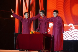 第三幕中,相声表演《建环number one》用诙谐幽默的语言,与之前表演的同学老师们“隔空互动”,结合大学生活抖包袱的同时,展现了奋发向上的生活态度;歌曲《淋雨一起走》用强烈的节奏感将晚会的氛围推向了高潮;朗诵《我在》彰显青年志气,令观众们激情澎湃;歌曲节目《烛光·逐光》悠扬动听,展现出新时代青年对美好生活的歌颂和奋斗追梦的姿态。