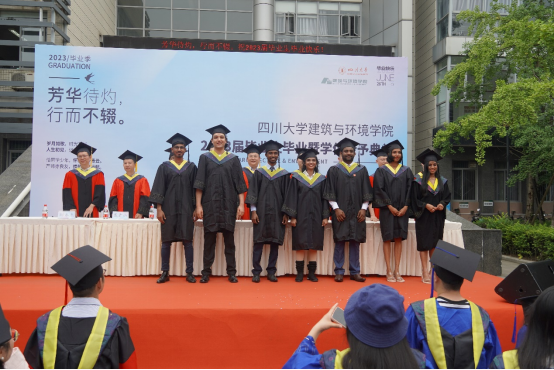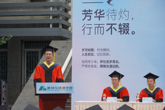 本科毕业生代表土木工程专业任玮楠同学表示身处时代洪流,作为仍能听从内心的召唤,永远是肩上飞扬有风、心似滚烫火焰的有梦青年,将心怀有梦,努力在自己的岗位上展现出川大人、建环人独有的风采。并祝愿学校、学院再展宏图、再谱华章。