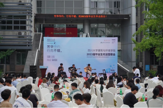 在四位毕业生的歌声中,2023届本科毕业生正式告别了青青校园,迈向崭新的人生旅程,开启无限可能的美好未来,愿同学们在时代的浪潮之中永远生机勃勃、永远斗志昂扬!典礼结束后,学院还安排了毕业歌会暨欢送会,借着月色在欢快的音乐中一起畅谈校园生活、分享未来计划。