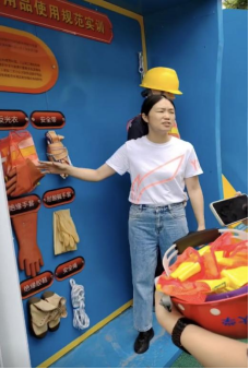 随后,参观了传统式建筑工程实训中心。从砖混结构、砌体结构等传统建造工艺到预制装配式围墙、预制柱、预制板等前沿技术,老师进行了对比介��工程千千万,安全第一条。在老师不失幽默的安全教育讲解下,同学们积极思考,也踊跃尝试�
