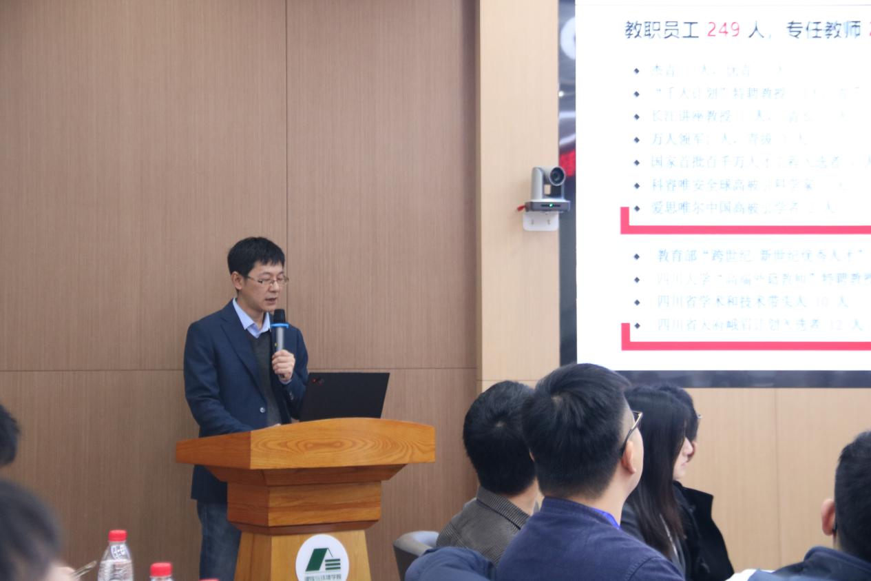 后的成长经历,鼓励海外学者,有学校、学院的支持肯定能助力青年学者快速成长。随后,学院四个一级学科分别就学科及专业建设、师资队伍建设、人才培养、科研条件等方面做了详细介绍。