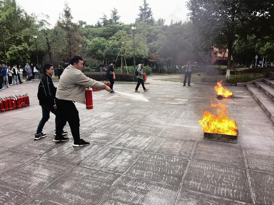 培训中,郑克峰结合实际案例讲授了火灾预防、消防器材使用、火灾初期处置、逃生等消防知识,并在学院大楼前广场向参训师生展示了灭火器实际操作流程,对关键步骤做了重点演示。通过实际培训,参训师生掌握了灭火器的使用方法。
