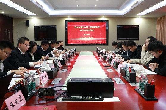 在交流座谈会上,中建二局华南公司党委副书记、工会主席罗资奇对学院一行表示诚挚欢迎,并介绍了公司的发展状况、近年来取得的成绩与未来发展规划。东莞分公司党总支副书记褚文科汇报了东莞分公司的基本情况,学院优秀校友代表卢俊旭、曾路林和冷沐冰分别就自身在华南公司的成长与发展做了分享。孙伯雷介绍了学院在加强学生培养和就业能力提升方面的举措,并表示学院始终致力于提升学生的综合素质和就业竞争力,这与华南公司的人才需求高度契合,期待进一步拓展合作领域、深化合作内容,培养更多优秀人才。二局华南公司还特别聘任了随行学生代表张世新、刘运军、杜佳豪担任校园宣传大使,三位学生也分别结合自身情况介绍了在校期间的学习、科研及未来规划。双方还重点围绕人才培养、科研合作以及学生就业能力提升等问题进行了深入探讨,达成了进一步加强合作的共识。