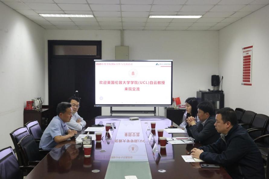 4月17日,英国伦敦大学学院(University College London, UCL)土木、环境与地质工程系白云教授应邀来学院交流访问,就海外人才引育、国际化人才培养及青藏高原绿色低碳工程材料联合研究等议题与学院开展深度合作交流。学院党委书记兰中仁,院长助理、土木工程系主任毛江鸿,学院人事秘书胡七丹,外事秘书杨锴参加座谈。