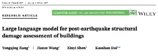 近日,学院土木工程系戴靠山教授团队王健泽副研究员在《Computer-Aided Civil and Infrastructure Engineering》(Computer-Aided Civ. Inf.)在线发表了题为《Large language model for post-earthquake structural damage assessment of buildings》的论文。学院2022级土木工程专业博士研究生江永清为论文唯一第一作者,王健泽副研究员为论文唯一通讯作者,黄色视频