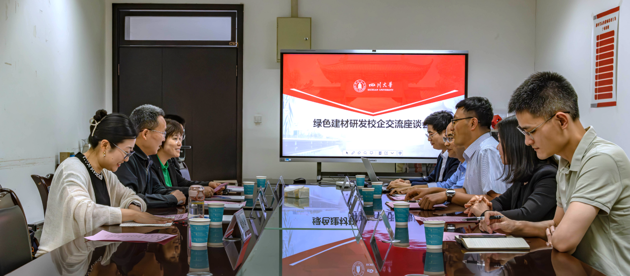 开展绿色建材研发校企交流座谈,学院党委书记兰中仁出席会议,双方围绕绿色建材研发、成果转化及校企双方合作模式等议题展开深入交流。四川建科院副总工程师肖承波、材料科学与工程研究院副院长张伟、新材料研发中心主任张林涛、专业技术骨干刘星,学院土木工程系李碧雄教授、石宵爽副教授、廖桥特聘副研究员及2024级农清舜博士参与座谈。李碧雄主持会议。
