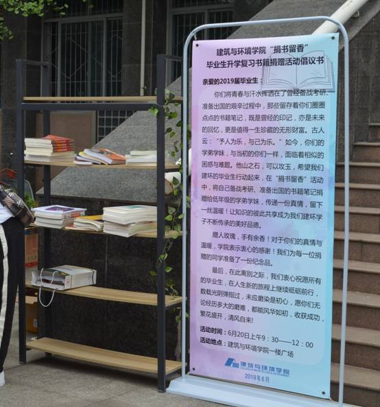 欢送会现场还有一道亮丽的风景,就是“捐书留香”毕业生升学复习书籍捐赠活动现场。在学院倡议下,毕业生们将自己的升学复习书籍捐赠给学弟学妹,留下临别前的真情与温暖。