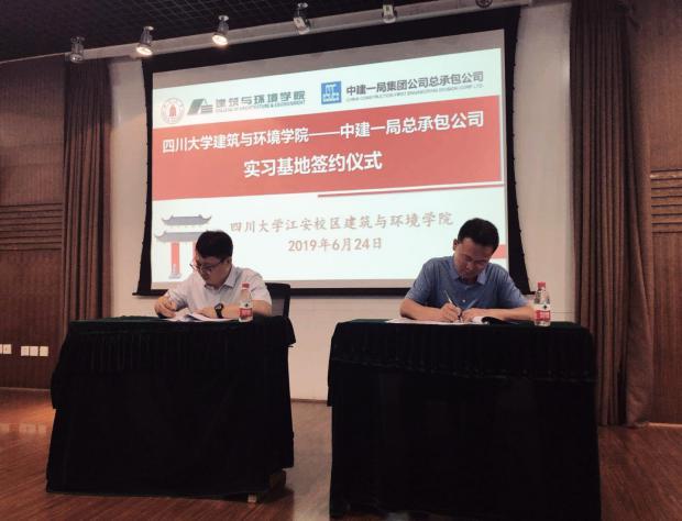 6月24日上午,学院与中建一局集团公司总承包公司实习基地签约仪式在江安校区学院二楼报告厅举行。学院副院长兰中仁、土木工程教研室主任阎慧群、教学科副科长吴雨珊、教务陈浩、学工组方宁杰以及中建一局集团公司集团招聘与人才发展经理邢浩然、公司董事会秘书人力资源总监孙立坤、西南分公司副总经理肖丰、西南分公司人力资源部经理张雪、西南分公司人力资源部高级经理董晓明、西南分公司人力资源部业务经理毛志强出席了本次活动。土木工程系100余名同学参加了相关活动。