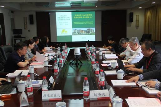 给排水科学与工程专业评估认证汇报会在江安校区明远楼(行政楼)301会议室召开。汇报会由教务处李华副处长主持,学校副校长许唯临出席汇报会并致欢迎辞。学校教务处、招生就业处、人事处、财务处、学工部、实验室及设备管理处、团委、图书馆等学校职能部门负责人,建环学院院长熊峰、党委书记蒋文涛、副院长兰中仁及给排水科学与工程专业全体教师参加了汇报会。