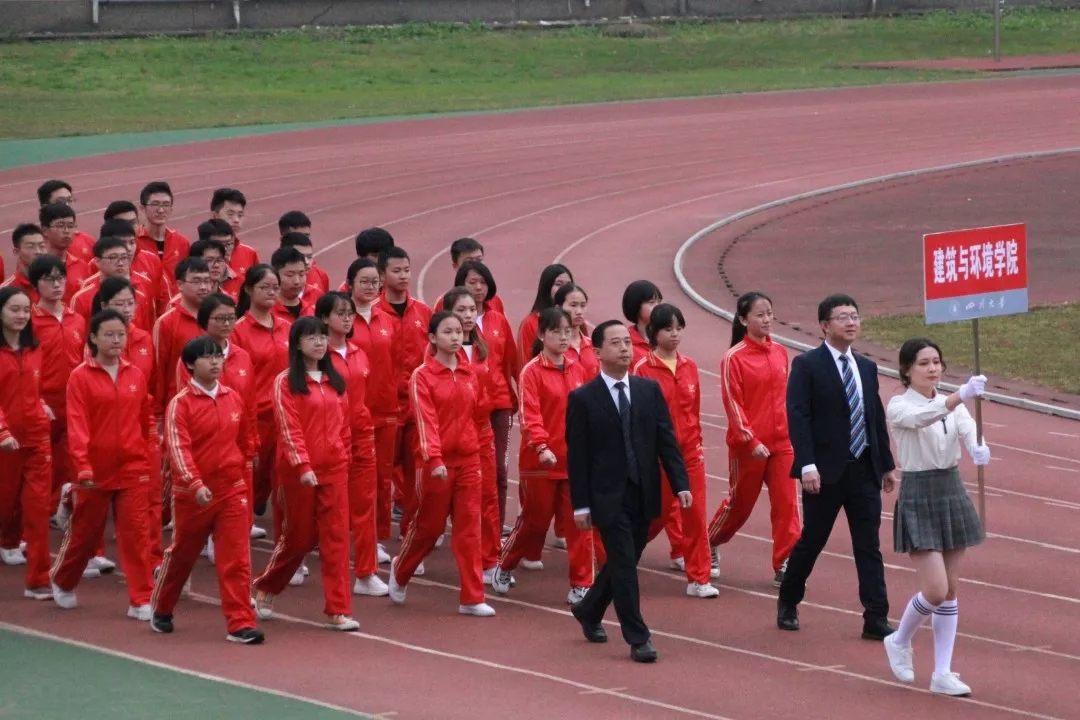 开幕式上,学院代表队在党委书记蒋文涛、副书记孙伯雷的带领下迈着整齐的步伐、喊着嘹亮的口号进入运动场,他们昂首挺胸、精神饱满,彰显出建环学子的朝气蓬勃。