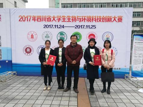 2017年11月25日,“第三届四川省大学生生物与环境科技创新大赛”决赛在四川农业大学雅安校区举行。学院环境科学专业2015级、2016级共11名学生组成的三个队伍参加了比赛。