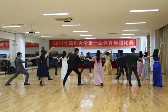 第一届学生体育舞蹈比赛在江安校区体育馆副馆开始比赛。学院代表队派出的八组同学为大家献上优雅的华尔兹舞蹈,随着音乐声响起,参赛者配合着舞伴们的脚步与眼神,进行着队形的变化,最终取得了第七名的优异成绩。