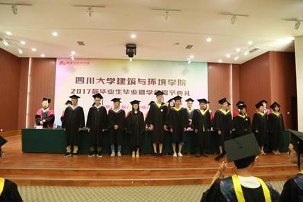 6月19日上午9:45,学院2017届毕业生毕业暨学位授予典礼在江安校区灾后重建与管理学院报告厅隆重举行。学院院长熊峰教授、学院党委书记蒋文涛教授、灾后重建与管理学院院长柯瑞卿教授、灾后重建与管理学院党委书记陈勇副教授、学院党委副书记兰中仁副教授、学院党委副书记廖光明教授、学院副院长周波教授、学院教授委员会副主席曾祥国教授、学院教授委员会副主席张永丽教授、力学与工程科学系系主任董世明、建筑系系主任张鲲教授、环境科学与工程系主任刘敏教授、土木工程系副系主任丁志斌老师出席了典礼。学院分团委书记孙伯雷老师主持了毕业典礼,学院2017届全体本科毕业生、研究生毕业生以及部分家长代表参加了毕业典礼。