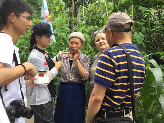 来到鸡冠山,国际交流营的中外同学探访民居民宿,以问卷调查的方式对当地居民的基本生活状况以及受地震和山地自然灾害后生活条件、当地建设状况进行深入地交流。问卷调查过程中,在中外老师的讲解下,观察了鸡冠山的地形、地质、植被及山地灾害与自然环境状况,并对自然灾害防治措施进行了实地考察学习。