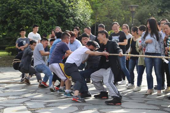 本次联谊活动共分为三个环节——“无敌风火轮”、“保卫小纸条”和拔河比赛。同学们在“无敌风火轮”这一环节中收获了宝贵的力学知识,增进了师生之间的情谊,获益匪浅。在“保卫小纸条”环节中,院长熊峰教授和众多老师加入到了游戏的队伍中,和同学们一起比试。老师们矫健的身姿、轻盈的步伐仿佛让大家看到了重返大学时代的他们,青春飞扬,活力四射。而第三个环节的拔河比赛则考验了同学们的默契程度和团结程度。