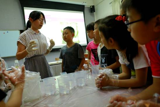 早上09:30,环境系植物学专家高辉副教授带领孩子们对江安校区中的植物进行了认识。通过近距离观察校园中的植物,孩子们不仅认识了植物的种类,也了解了植物的相关特征与故事。之后,孩子们在法学院咖啡厅中进行了树脂标本的制作。在高辉副教授及研究生的指导下,孩子们将自己挑选的干燥的花和叶组合成自己喜欢的造型放入模具内,再使用树脂固定成型,亲手体验了新型标本的制作过程。
