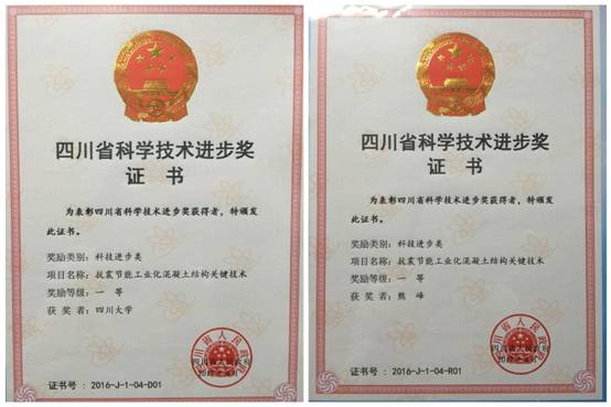 、四川省建筑设计研究院、四川华构住宅工业有限公司、四川华西绿舍预制构件有限公司共同完成的项目“抗震节能工业化混凝土结构关键技术”喜获2016年度四川省科技进步一等奖。院长熊峰教授作为第一完成人,代表项目组参加了此次奖励大会,陈江、葛琪两位老师作为项目主研人员分别获奖。