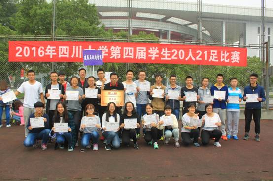 第五届学生拔河比赛在江安校区室内网球场拉开帷幕。16日上午,第四届学生20人21足比赛在江安校区1号体育场举行。学院代表队依次与历史学院、物理学院和化学工程学院展开激烈争夺,三战全胜,第一轮顺利出线,一路向前;最终与公管学院在五、六名争夺赛中取得胜利,以第五名的好成绩为前一段时间的辛苦训练画上了圆满的句号。