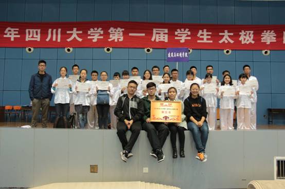 22日上午9:00,第一届学生太极拳比赛在江安校区体育馆内拉开了帷幕。学院代表队与匹兹堡学院代表队一起作为第七组参赛学院进行了表演。同学们身姿挺拔,动作整齐,“双峰贯耳”、“转身搬拦捶”等几个经典动作的完美演绎赢得了评委老师的一致赞许。最终,学院代表队以8.92分的成绩获得了本次比赛的第五名。