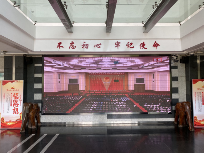 开放电子显示屏,实时播放大会召开情况。因上课等不能在集中收看点收听直播的部分师生,可利用各种新媒体渠道,发布大会收看照片、分享心得体会。