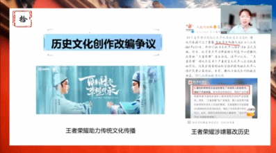 同学们就文化传承的形式、传统与商业在文化传承中的矛盾与协同、传统节日习俗、历史文化创作改编争议等议题进行了激烈深入的讨论。邹佳宏、林姝含提出以自媒体为代表的传播方式有利于文化传承,但需要注意传承其精神内核;林琛、董子豪认为传统文化需要利用商业运作方式打破固有印象,成为服务于当下的常见文化形式,但应注意商业化产生的副作用;杜星慧、印康玮认为传统习俗的改变或保留应顺应时代发展和民生需求,但应保持其精神内核不变;路翔仪、秦宇轩补充表示各类传播媒体应该以传播历史人文为己任,尊重正视史实。在同学开麦发言时,其他同学也在评论区积极互动交流,阐述想法,气氛热烈。