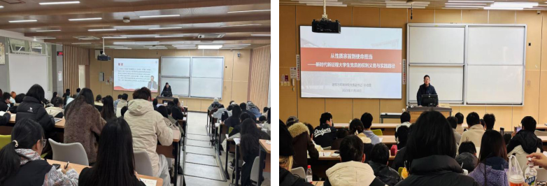 为深入学习习近平新时代中国特色社会主义思想和党的二十届四中全会精神,进一步坚定发展对象理想信念,端正入党动机,学院党委联合艺术学院、经济学院党委开展第159期党校发展对象培训班。本次发展对象培训班由线上理论学习、线下讲座、小组讨论和实践活动等环节共同组成。线下讲座于11月30日在江安校区综合楼C103教室举行。学院党委副书记兼纪委书记孙伯雷、专职组织员高倩,艺术学院专职组织员张露洁出席培训开班仪式。马克思主义学院教授付志刚和孙伯雷先后为发展对象授课。