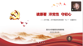 为加强学生党员党性修养,推进习近平新时代中国特色社会主义思想入脑入心,在中国共产党成立99周年之际,学院2018级、2019级本科党支部于6月29日在腾讯会议平台线上开展了“读原著 淬党性 守初心”主题学习活动,支部全体党员一一分享了各自在本学期阅读的经典原著。