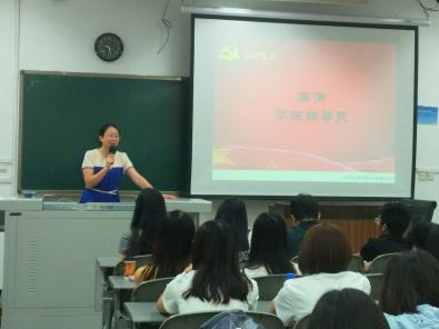 此次宣誓活动由景观研究生党支部书记廖宇嘉主持,在全体党员唱响雄壮的《国际歌》后,宣誓仪式正式开始。博士研究生陈琳同志带领全体党员宣读誓词。“我志愿加入中国共产党……”教室里响起阵阵激昂的宣誓声,每位党员都用发自内心的声音抒发对党忠诚的决心,面对着党旗,大家接受了一次身心的洗礼。宣誓完毕后,来自2015级环境科学专业硕士研究生的新党员代表安晓倩和来自2016级土木工程专业的博士研究生的老党员代表刘杨分别发言。他们的发言道出了所有新党员和老党员的心声,他们表达了自己要恪守在党旗下的诺言,更加严格要求自己,时刻保持共产党员的先进性和先锋模范作用,努力使自己成为一名优秀共产党员的决心和信心。尤其是刘杨同志的演讲很贴切地为大家举了发生在学生党员身上的实例,通过实例的分享激励了大家作为一名研究生党员理应在学术的道路上踏实认真地做好学术研究,发扬出党员同志的先进性。