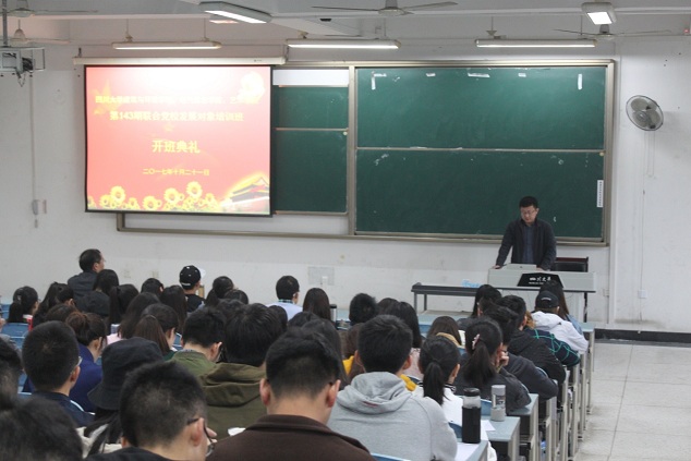 本期培训共开设五次培训。10月21日上午9:30,学院在江安校区综合楼C座306教室举行了开班典礼,学院党委副书记兼纪委书记孙伯雷同志对参加培训的发展对象表示热烈的欢迎,提出了培训要求和希望。