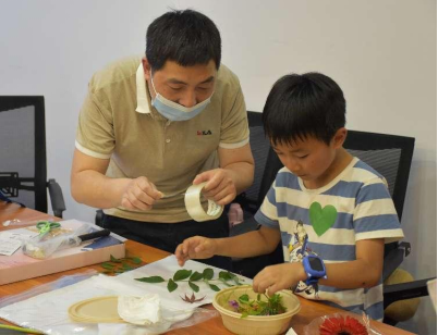 此次活动遵守儿童发展规律,活动开展规则从儿童成长角度出发,按照绿心组、蓝心组、黄心组推进活动的开展。绿心组为“参观江安植物园及标本制作”组,蓝心组为“科学小实验”组,黄心组为“建筑工坊”组。三组小朋友在指导老师的引领下,分别进行了实践活动。绿心组在指导老师梅兰菊的带领下,实地观察了以明远湖为中心的方圆三公里以内的植物,通过对植物形体颜色等的辨识了解植物的特性。小朋友们根据自己的喜爱,采摘了拓本制作所需要的的植物原料,在老师的指导下动手制作了印花手绢,可谓躬行求知,寓教于乐。蓝心组在金燕老师、刘亚老师的指导下,运用显微镜观察并自主绘制生物标本,制作简易过滤装置净化浑浊泥水,通过科学实验体验环保对社会发展的意义,在每位参与活动的小朋友心里播下了环保的种子。黄心组小朋友在毛颖老师的指导下,动手制作复杂的建筑手工模型。建筑模型配件极为精致细巧,锻炼了小朋友的专注力与形象思维能力。