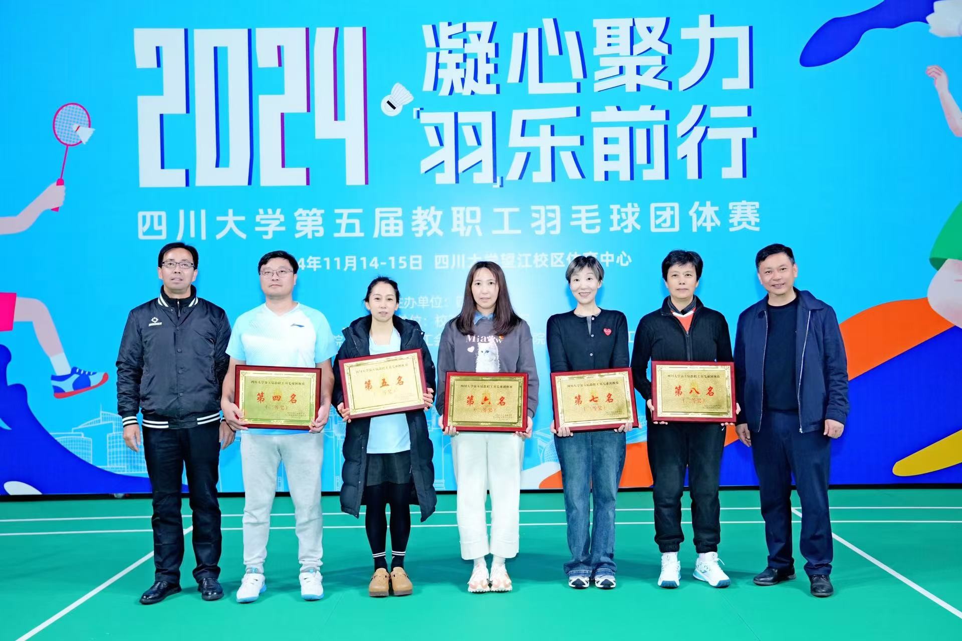 11月15日,2024年“凝心聚力 羽乐前行”黄色视频 第五届教职工羽毛球团队赛落下帷幕,学院教职工羽毛球队经过团结协作,奋力拼杀,在比赛中荣获二等奖的好成绩。