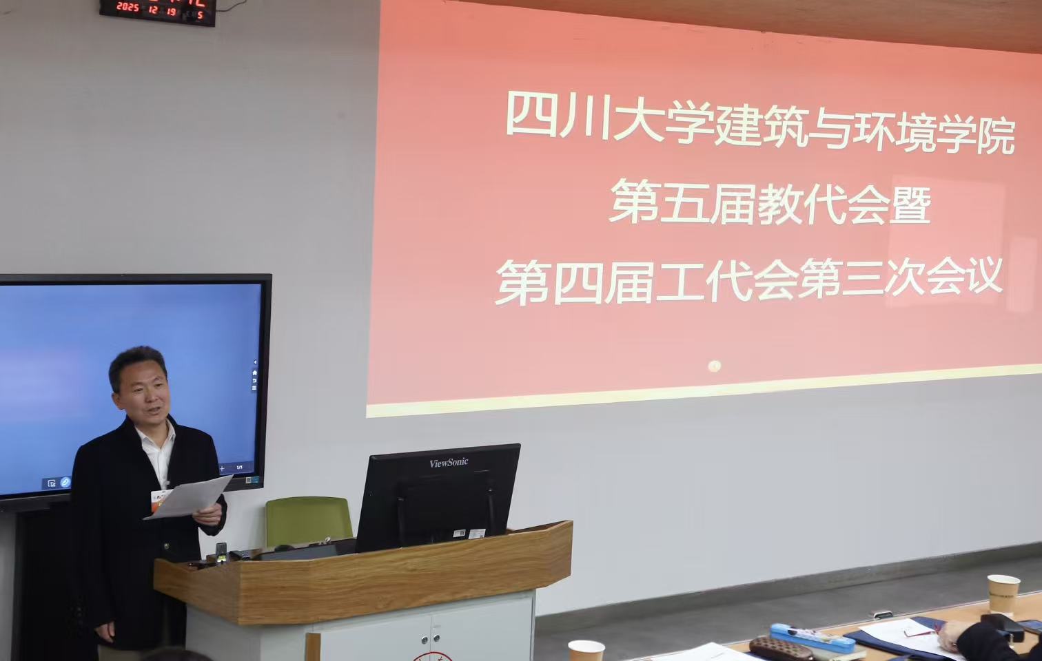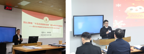12月19日,学院在望江校区基础教学楼C101召开了2025年“双代会”。 学院班子成员、工会主席,全体“双代会”正式代表、列席代表参加了会议。学院副院长刘永杰主持会议。大会听取并审议了2025年学院工作报告、学院工会工作报告;审议并讨论了《学院“十五五”事业发展规划(2026—2030年)》。