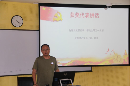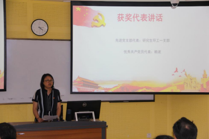 学院党委副书记孙伯雷宣读了学院表彰决定,并向受表彰的先进集体和个人表示祝贺。学院领导为获奖单位和个人颁发奖状。先进党支部代表高倩(研究生环工一支部书记)和优秀共产党员代表赖波分别发言。