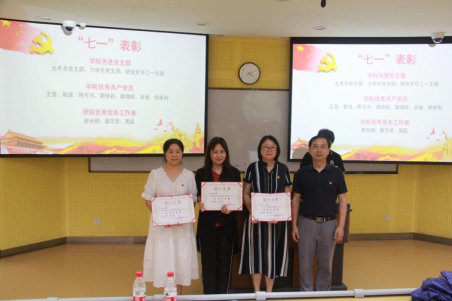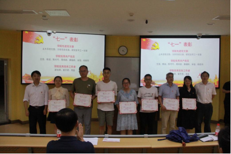 庆祝建党100周年暨七一表彰大会在研究生院一区104举行。会议对学院3个先进党支部、7名优秀共产党员、3名优秀党务工作者和10名先进个人进行了表彰。学院领导班子成员、两委委员及党员师生代表参加了本次大会。会议由学院党委副书记王晖主持。