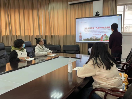 党的十九届六中全会在建党百年之际,全面总结党的百年奋斗重大成就和历史经验,体现了我们党重视和善于运用历史规律的高度政治自觉,体现了我们党牢记初心使命、继往开来的自信和担当。为深入学习贯彻党的十九届六中全会精神,12月3日下午,学院2021级本科支部在江安校区学院三楼会议室通过线上线下结合方式开展了以“不愧使命担当,不负伟大梦想”为主题的十九届六中全会精神专题学习,支部书记梅兰菊主持。