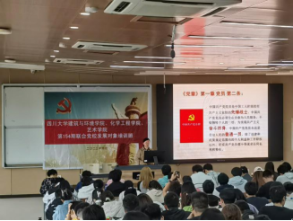 为深入学习贯彻党的二十大精神和习近平新时代中国特色社会主义思想,加强发展对象党的基本理论和党史学习教育培训,进一步坚定共产主义理想信念,端正入党动机,明确努力方向,以实际行动争取早日加入中国共产党。学院联合化学工程学院、艺术学院举办了第154期党校发展对象培训班,开班典礼于4月9日在江安校区综合楼C307教室举行。学院党委副书记孙伯雷,化学工程学院党委副书记姜利寒、辅导员雷金凤,艺术学院辅导员李嘉璐出席本次开班典礼。