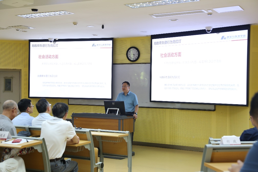 报告中,华国春围绕“强化师德师风,坚持立德树人”主题,从高校师德师风建设的发展历程、新时代要建设什么样的师德师风、向教师失德行为亮红灯三方面,详细讲解了师德师风的内容、特征及新时代的要求,通报了近年来学院教师违反师德师风建设要求的真实案例,提醒告诫教职工坚守为人师表传统,牢固树立底线意识,不踩红线,不触高压线,努力为实现教育强国贡献力量。